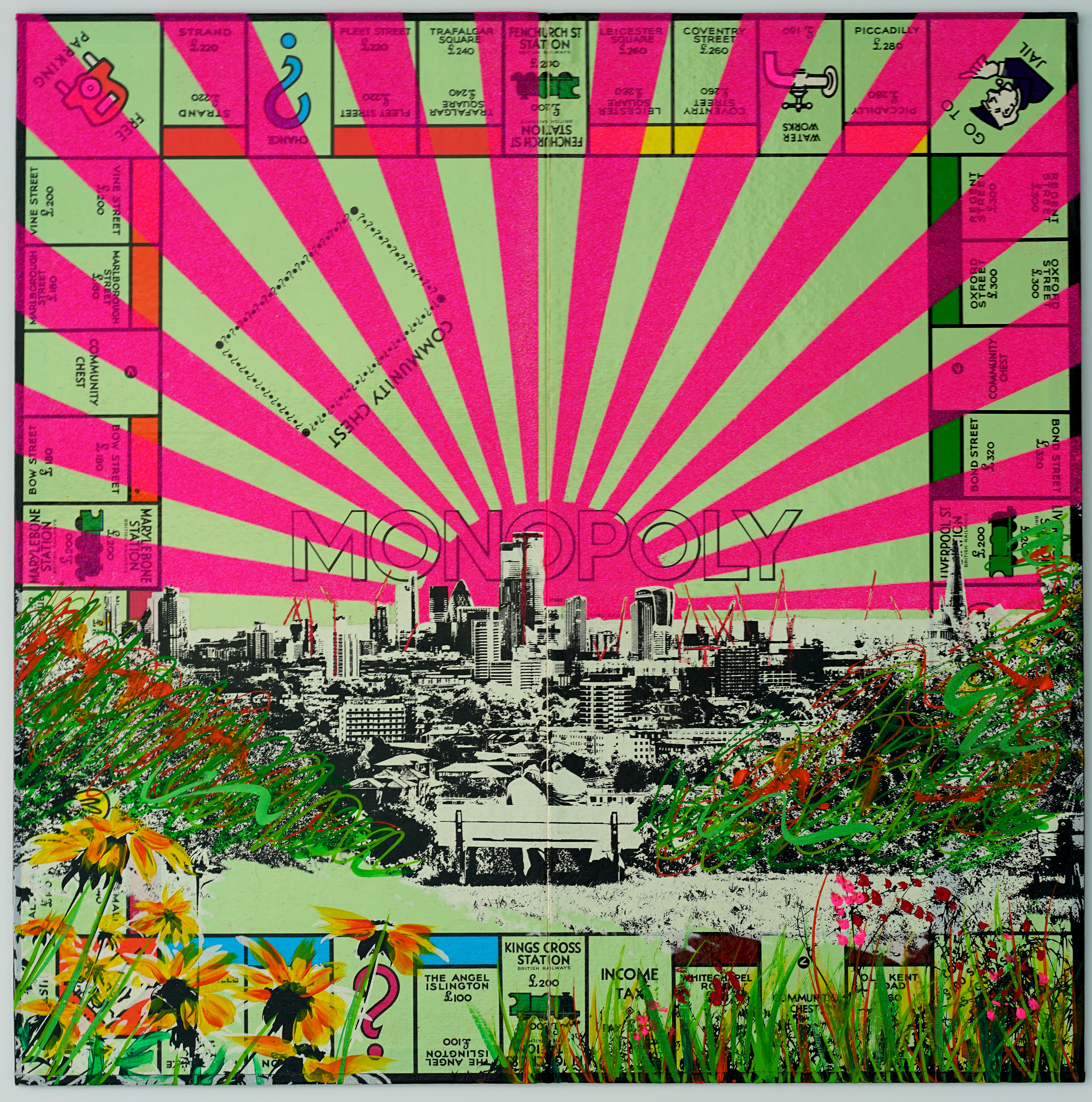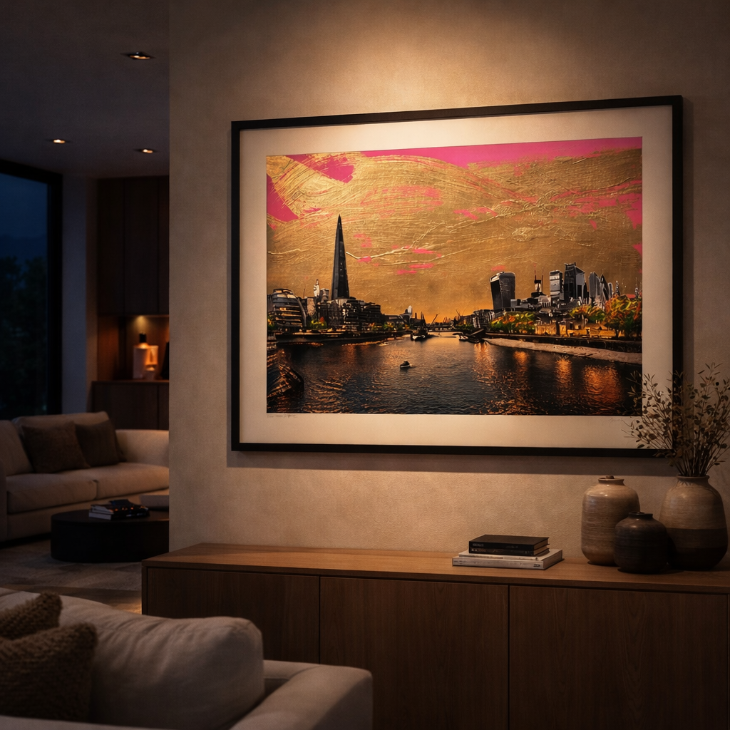 Brought to life through gestural mark-making, luminous colour pallet and swathes of metallics, I try to capture the life and soul of the city.